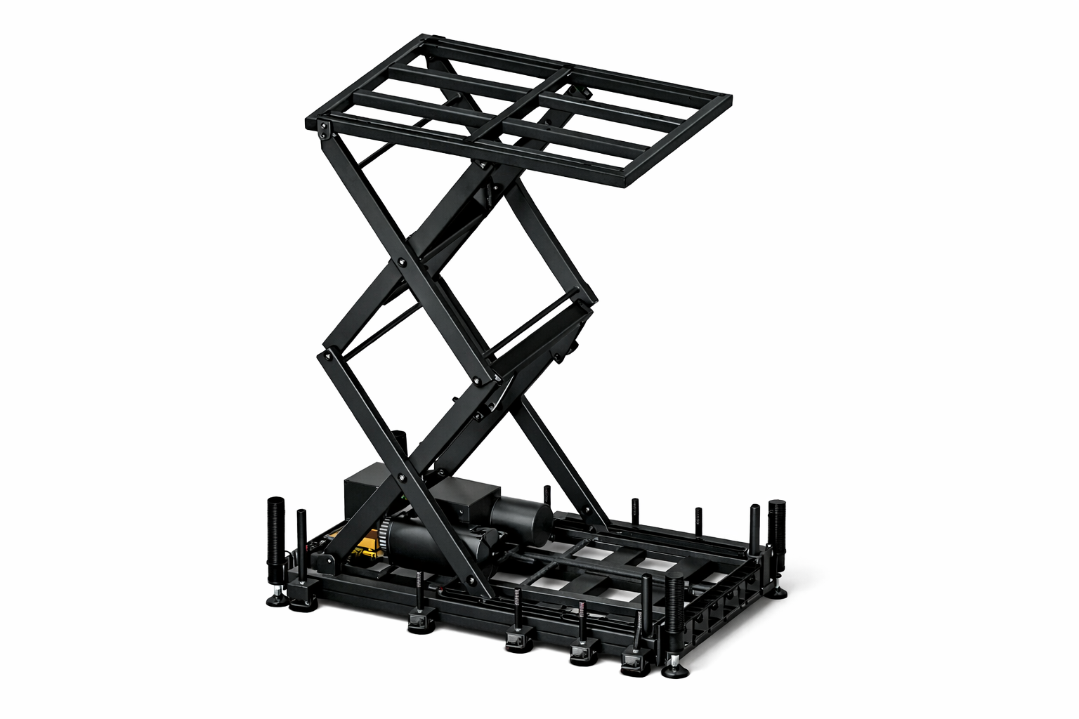 La table élévatrice 2 m x 3 m est conçue pour la levée d’une charge de 2 tonnes à une hauteur de 2,10 m.